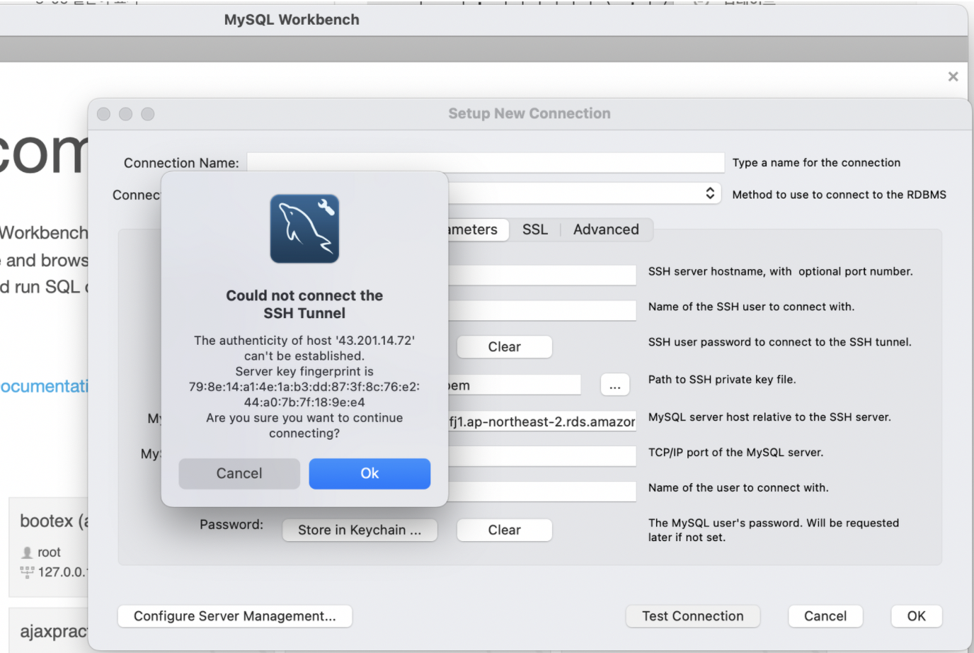 윈도우의 경우 로컬 db를 만들며 생긴 ssh안에 있는 'known_host'파일을 삭제하고 다시 연결하면 새로운 호스트를 받아들일 것이다.