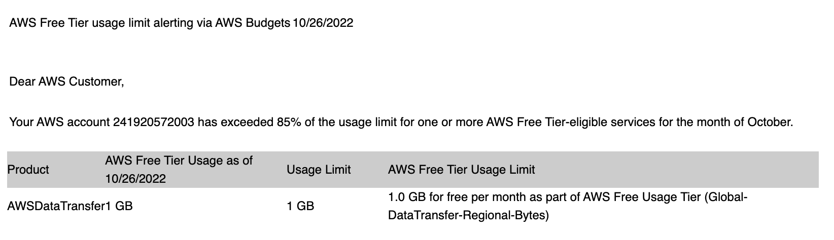 그에 더해 아래처럼 메모리를 거의 다 써 간다라는 메일을 받게 되니 '프리티어의 한계인가'라는 생각과 동시에 사양을 변경해서 메모리를 올려야 하나라는 고민을 하였다.