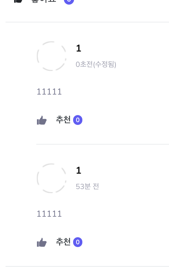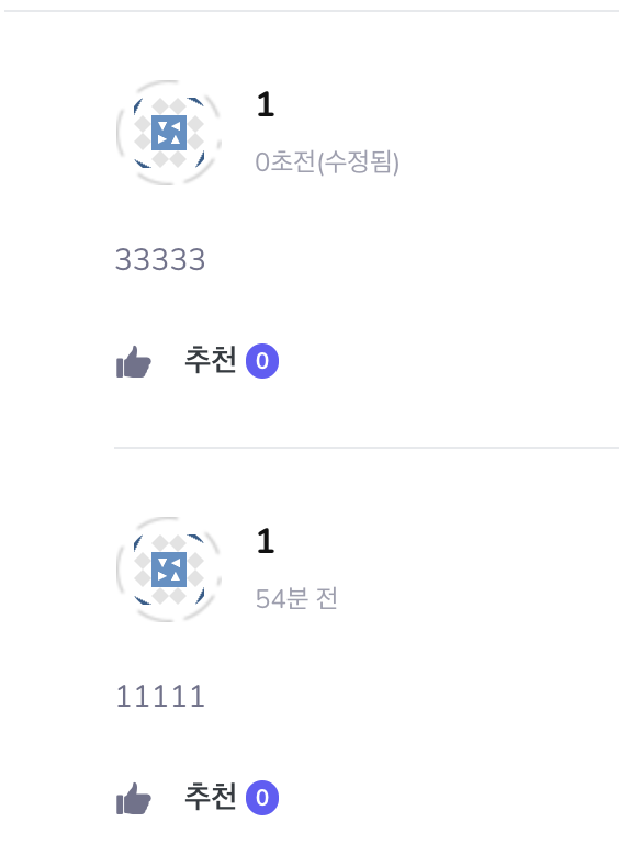 댓글등록시에는 html뷰를 하나를 따로 두고 값만 바뀐 페이지일부를 교체하는 형태로 구현했고, 댓글 수정과 삭제는 jQuery load메서드를 사용하여 비동기통신을 구현했다. 해당 에러는 jQuery load메서드를 사용할때에만 jdenticon의 이미지가 나오지 않는 상황이었다.